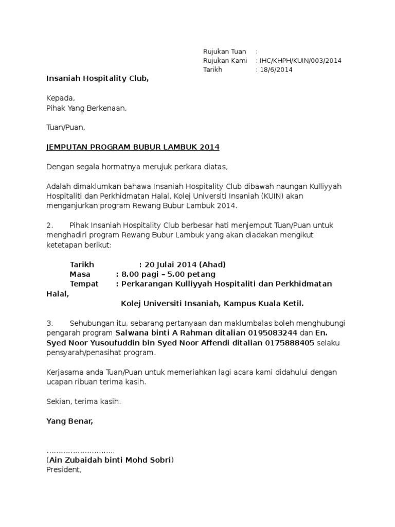 Surat Jemputan Ke Majlis Rewang Bubur Lambuk Pdf